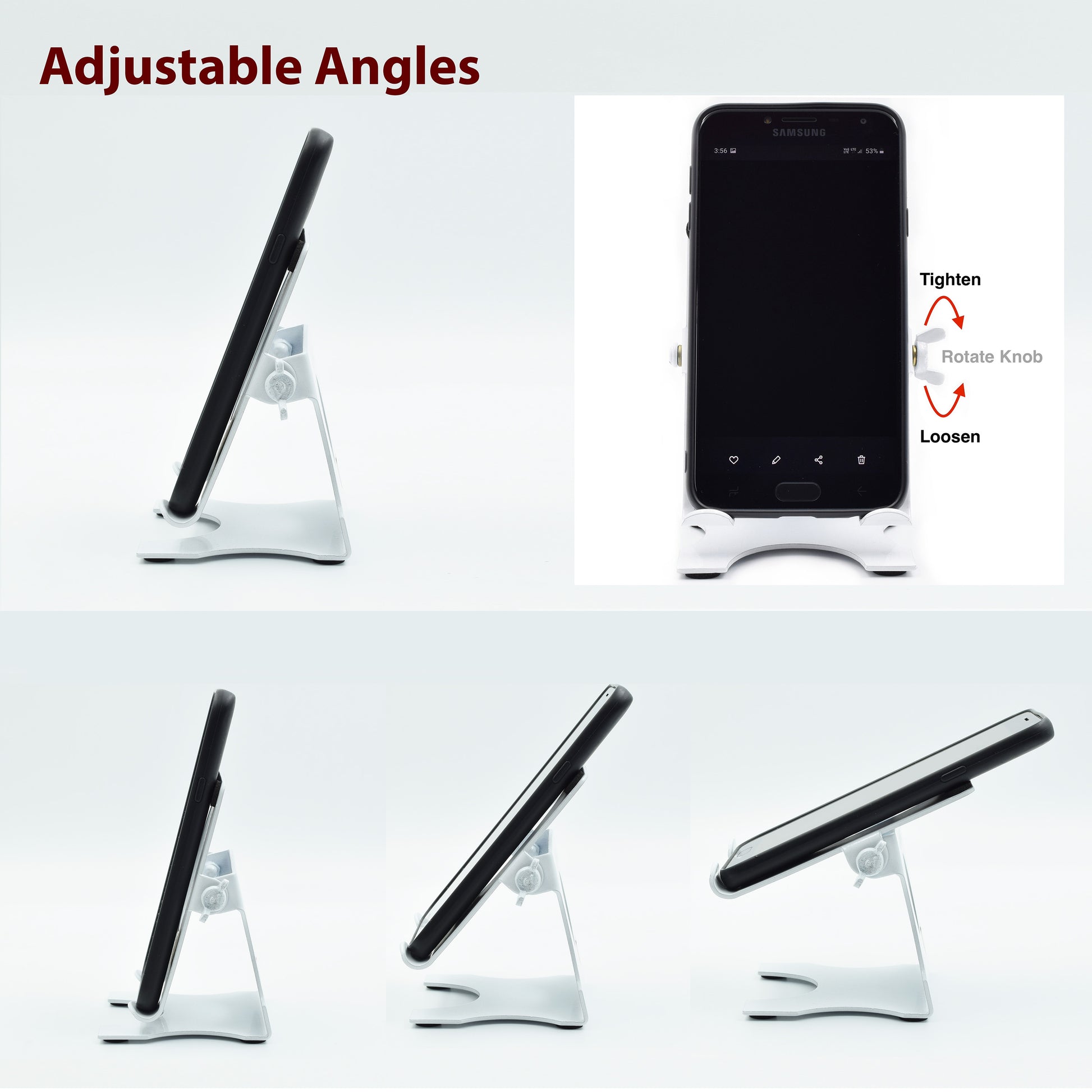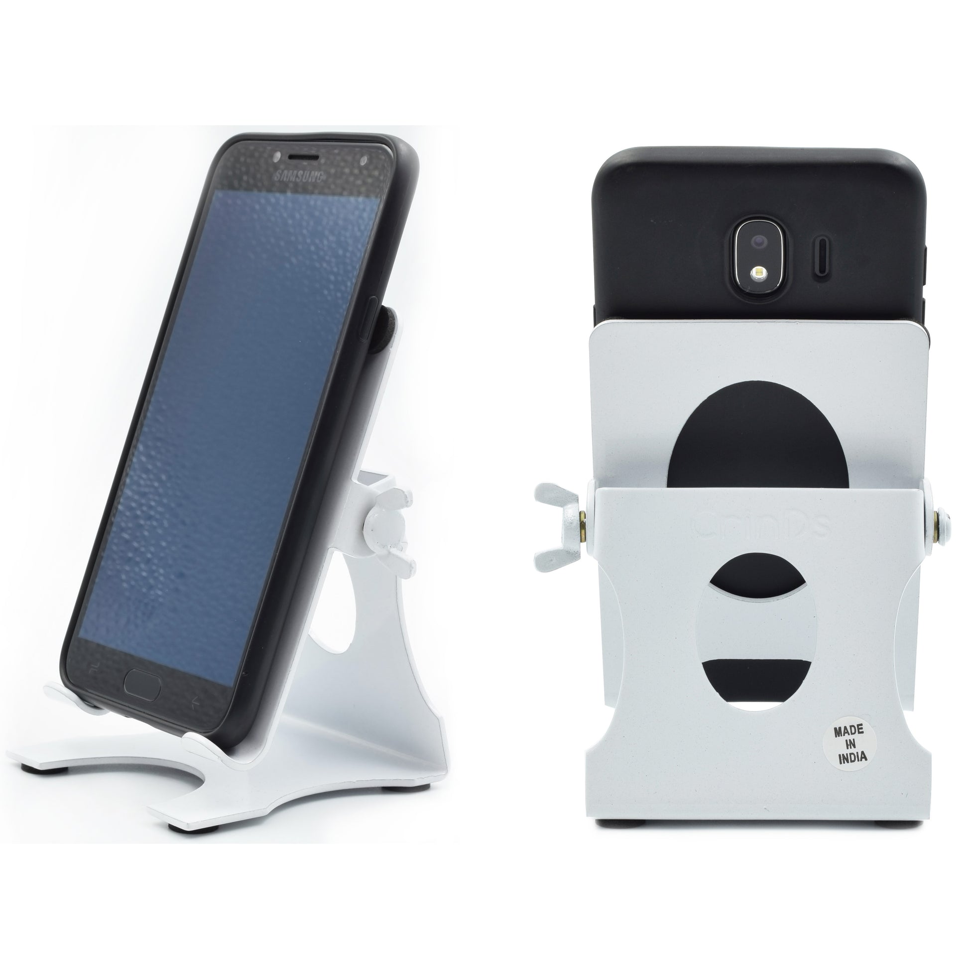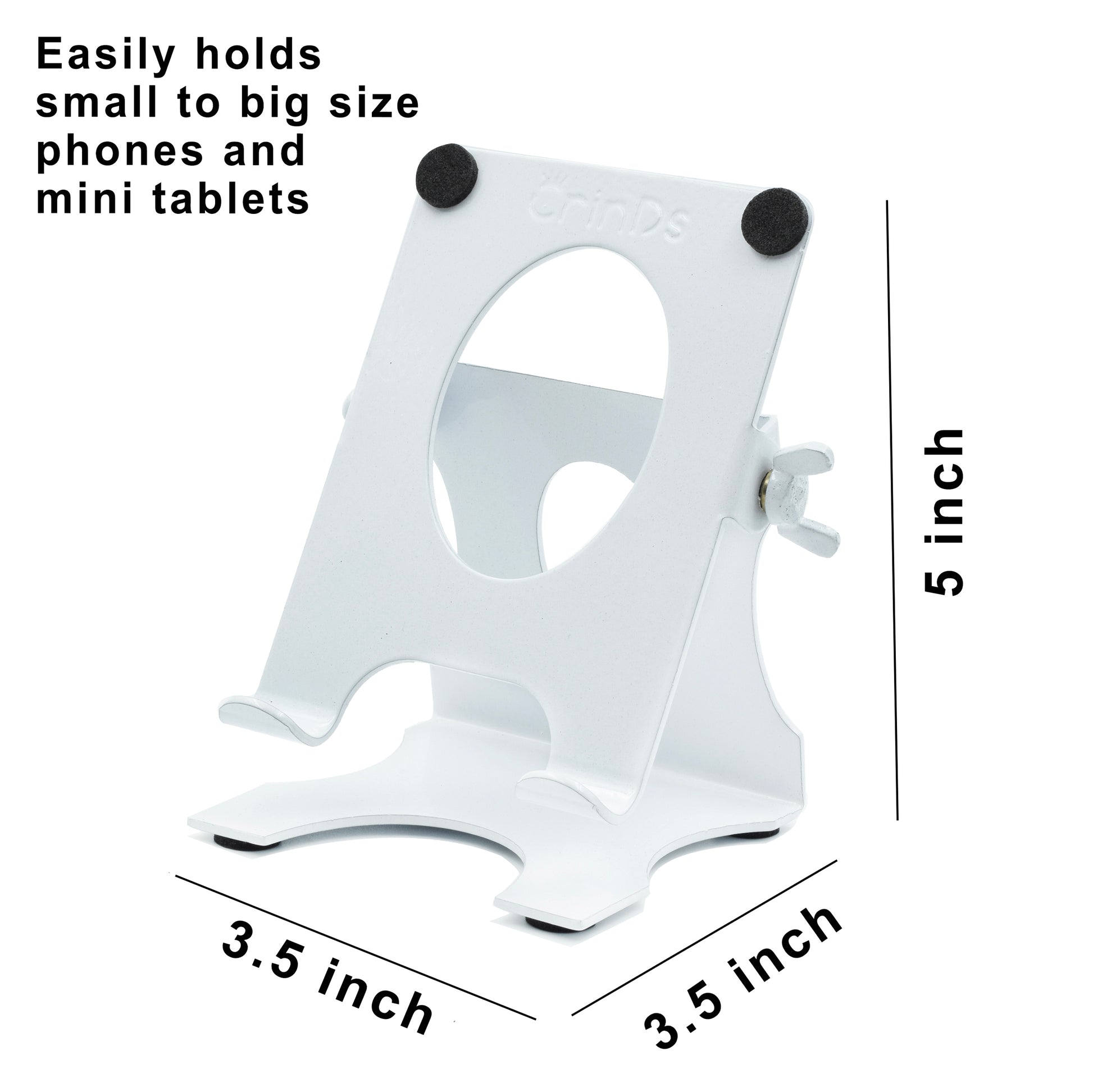 Crinds Pure Metal Heavy Sturdy Adjustable Mobile Cell Phone Stand holder with Big Back Support to Hold Small Medium Big Size (Upto 10 Inch) of iPhone, iPad, Smartphones, Tablets, Tabs, Kindle Crinds Pure Metal Mobile Stand for table & desk stand can provide a safe and secure mount for your smartphones and tablets, vertical or horizontal. Now it is time for you to give your hands a break, and enjoy videos, readings, FaceTime, browsing the web and other hands-free operation. Adjustable Multi-Angle From 0 to 100 Degree, you can adjust to your preferred angle among 10 different viewing angles, and watch videos in a more position. It is easy to operate, just rotate the knob and push the panel to a desired angle. Sturdy and Reliable Made of pure metal material with heavy duty thickness of 2mm, making it sturdy and secure. Well-placed rubber feet protect your device from possible scratches. Perfect Size : 5 x 3.5 x 3.5 inch. The researched design makes for added convenience when holding big size phones or tablets and easy to carry on the go. Extensive Compatibility with 5x3.5 inch cradle design, this flexible smartphone stand is well made for all smartphones, iphones, ipad, tablets, tabs, kindle, e-reader etc.