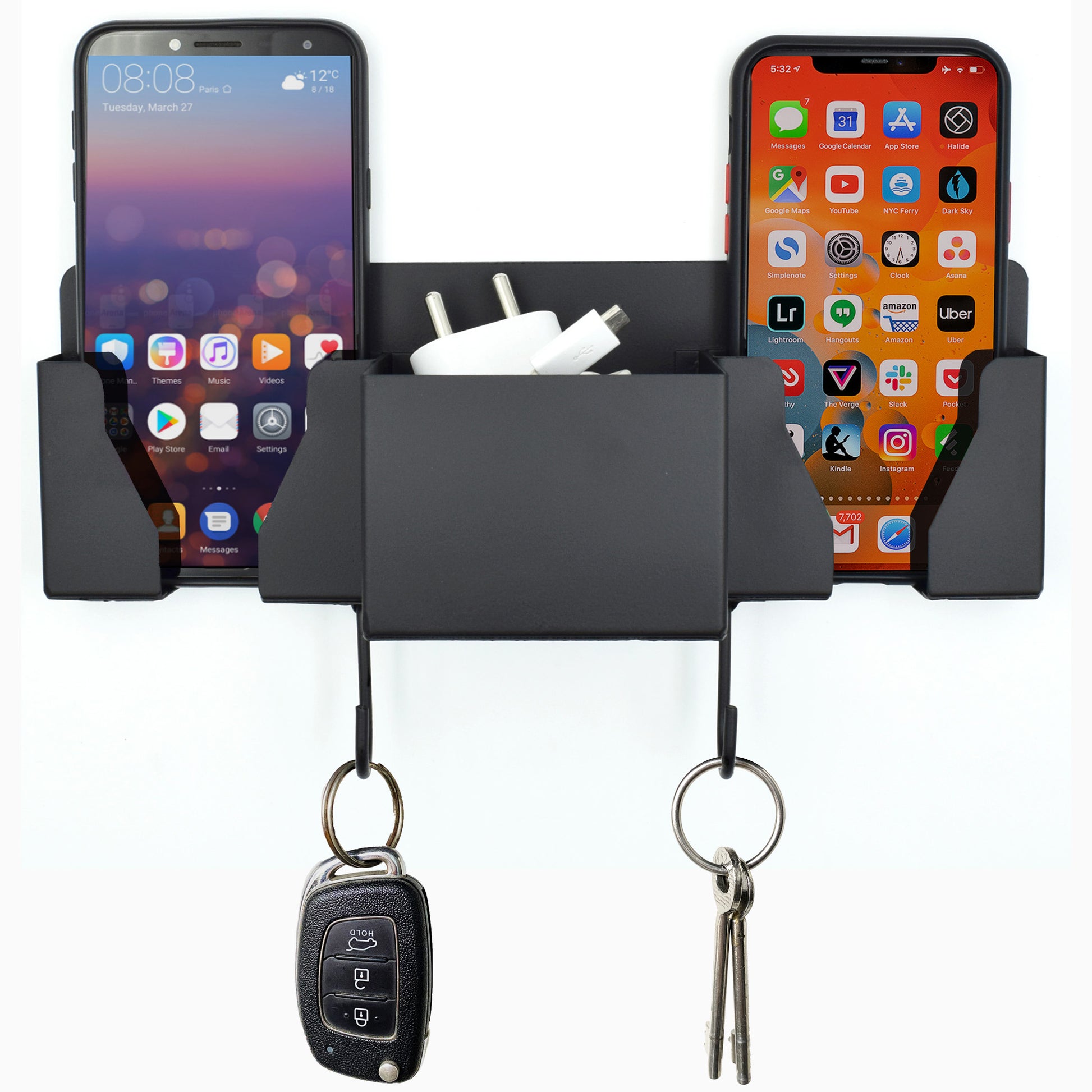 - VERY USEFUL: 3 Compartments - Keep 2 Phones while charging. Hooks for Hanging Keys or other Accessories.